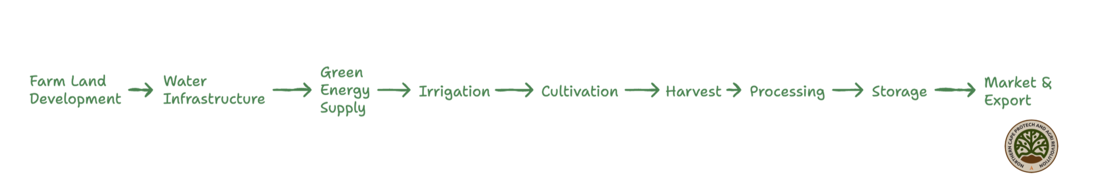 The agricultural program creates an opportunity to turn the region into productive farmland, supports agricultural development and small business growth, and creates significantly more long-term employment than farming alone can, by keeping processing and value creation within the region.